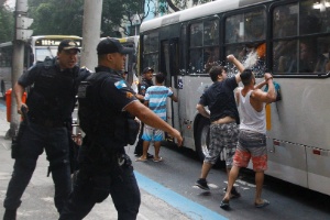 Em Copacabana, jovens de classe média depredam ônibus que iria à zona norte