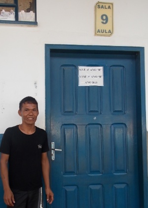 Edilson em frente a sala que leciona